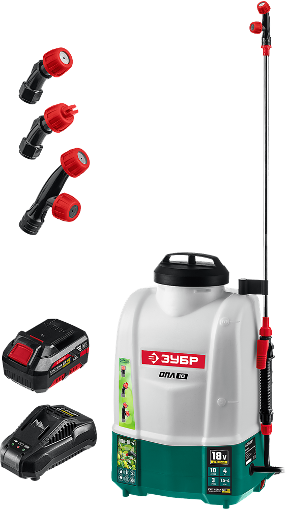 ЗУБР 10 л, 1 АКБ 4 А·ч, аккумуляторный опрыскиватель (ОПЛ-10-41)