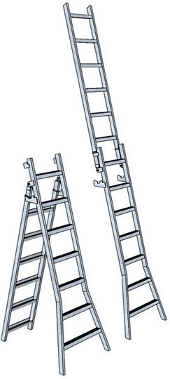 Алюминиевая двухсекционная лестница ЛСМ-2,5 8 ступеней может применяться как приставная, выдвижная лестница и свободностоящая стремянка. Шестнадцатикратное соединение перекладин с боковинами обеспечивает особо высокую стабильность и долговечность. Со всех сторон профилированные перекладины обеспечивают надежный подъем и работу. Широкая поперечная траверса с опорными наконечниками из двух компонентов обеспечивает высокую степень безопасности. Самозахватывающие фиксирующие крюки предотвращает произвольное разъединение во время транспортировки. Во избежание скольжения, а также с целью изоляции опоры, лестницы имеют резиновые оконцеватели.