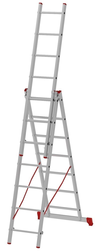 Алюминиевая трехсекционная лестница Vira 3х7 широко применяется для ремонтных и строительных работ. Модель изготовлена из коррозиестойких материалов и не разрушается под воздействием влаги, что позволяет использовать ее на открытой площадке. Устойчивость к изнашиванию способствует долгому сроку службы приспособления. Конструкцией предусмотрено наличие наконечников из пластика, что не дает лестнице скользить по опорной поверхности. Возможность снять траверсу значительно уменьшает ширину приспособления и упрощает его транспортировку. Выносная секция качественно фиксируется стальными четырехугольными скобами, что исключает самопроизвольное складывание лестницы в процессе эксплуатации. Лестница выдерживает нагрузку до 150 кг.