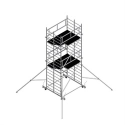 Для сборки алюминиевой передвижной вышки используются боковые секции – лестничные рамы высотой 1 и 2 метра. Ступени боковых секций сделаны из рифленых круглых труб для предотвращения скольжения. Подъем реализуется по внутренней стороне непосредственно через рабочие площадки.