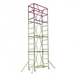Алюминиевая вышка-тура Svelt Millenium модульная 1,95м MILLENIUM195 — модульная конструкция с максимальной рабочей высотой до 10,18 метров. Состоит из базового и промежуточных модулей, ограждений, настила, стабилизаторов. Для установки на лестничных маршах и неровных поверхностях используются специальные опоры. Используя необходимый набор модулей, для каждой рабочей ситуации можно сконструировать максимальный подходящий вариант. Вышки-туры MILLENIUM изготавливаются из трубчатого алюминия диаметром 42 мм. Идеальна для ремонтных и отделочных работ, технического обслуживания. Оснащение конструкций ограждениями, стабилизаторами и другими комплектующими создает максимальную безопасность при эксплуатации оборудования. Габариты модуля А (без базы): 1,60 х 0,80 м. Габариты модуля В (без базы): 1,70 х 1,30 м. Рабочая площадка: 1,40 х 0,60 м (12,5 кг). Допустимая нагрузка: 150 кг. Расстояние между ступенями: 30 см. Колеса с тормозом – диаметр 125 мм.