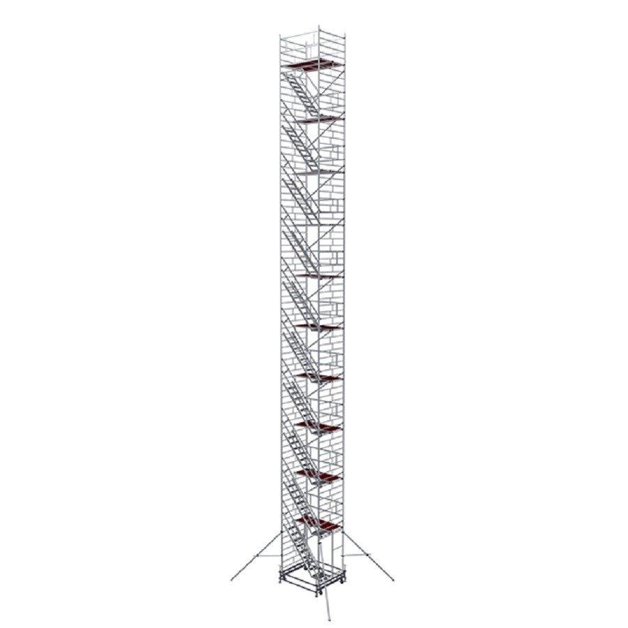 Алюминиевая вышка-тура ВМА 1400Л/22 22,3 м с наклонными лестницами надежна и очень удобна для частых подъемов и спусков с громоздкими и тяжелыми грузами. Верхняя рабочая площадка вышки-туры алюминиевой оборудована большим откидным люком для удобной работы, размещения рабочих, материалов, инструмента и оборудования. Покрытие площадок изготавливается из влагостойкой нескользящей фанеры. Входной проем для беспрепятственного подъема с крупногабаритным грузом делает вышку-туру наилучшим оборудованием для проведения работ на высоте. Рабочие площадки расположены через каждые 2 метра, что значительно облегчает подъем. Перемещение между рабочими площадками осуществляется по наклонным лестницам с большой первой ступенью и со ступенями глубиной 160 мм. Поверхность ступеней выполнена из рифленого листа, предотвращающего скольжение.