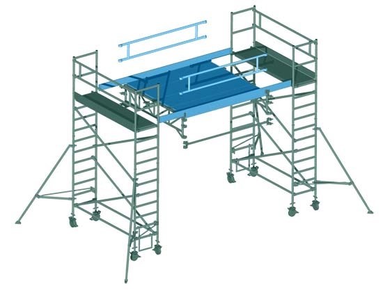 Алюминиевая вышка-тура Zarges Z600 8,2м 53718. Ширина основной вышки (слева и справа): 0,75 м. Длина основной вышки (слева и справа): 2,50 м. Длина перехода (между основными вышками): 1,80 м; 2,50 м или 3,00 м. 4 модифицируемых рабочих высоты от 5,40 м до макс. 8,20 м из серийных деталей. Стандартные ролики: направляющие ролики с домкратом 200 мм (номер для заказа: 42874) для выравнивания по высоте с точностью до миллиметра с повышенной грузоподъемностью в 1 000 кг/ролик. Группа вышек 3 (можно нагружать до 200 кг/м2), т. е. здесь в зависимости от длины перехода от 1575 кг до макс. 2175 кг.