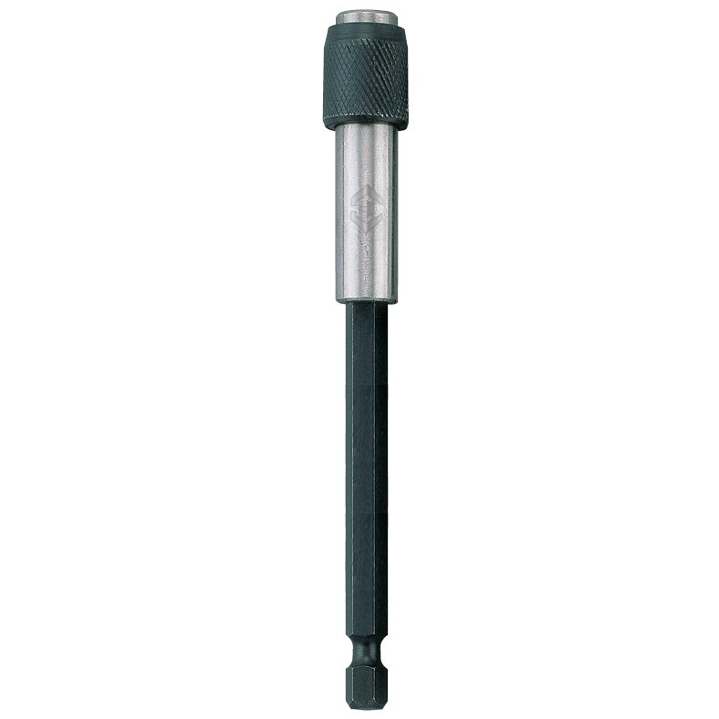 Является переходником, одна часть которого зажимается в шуруповерт, другая фиксирует биту с помощью магнита.