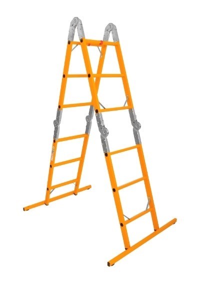 Диэлектрическая шарнирная лестница ЗЭП ЛСПТС-4х1,5/1,0П-55 - это стекловолоконная лестница, состоящая из четырех секций, соединенных между собой шарнирными механизмами. Шарнирный механизм позволяет фиксировать различный угол между секциями, это позволяет использовать лестницу-трансформер как лестницу приставную, лестницу-стремянку или подмость. Для изготовления тетивы используется диэлектрический стекловолоконный профиль прямоугольного сечения. На нижних концах тетивы – противоскользящие эластополимерные опоры. Ступени изготовлены из профиля 36х26 мм с противоскользящими ребрами.