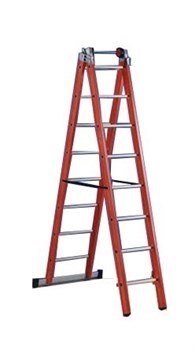 Двухсекционная диэлектрическая лестница Svelt 2x16 V2X16 — профессиональная лестничная техника, трансформируемая в стремянку и приставную лестницу. Она предназначена для обслуживания электрооборудования, работы вблизи кабелей и других источников электроэнергии. Лестница разработана в соответствии со стандартами EN131 и протестирована при 100.000 вольт. Стеклопластиковые профили 70/90 мм рассчитаны на интенсивную эксплуатацию, а стабилизатор и большие опорные наконечники на концах стоек способствуют устойчивости конструкции. Простое и комфортное складывание / раскладывание двухсекционной лестницы Svelt осуществляется благодаря эргономичным алюминиевым шарнирам. Рычаг блокировки и ремни предотвращают случайное складывание секций. Рифленые ступени, расстояние между ступенями: 28см. Ширина профиля: 90х32. Максимальная нагрузка 150 кг.