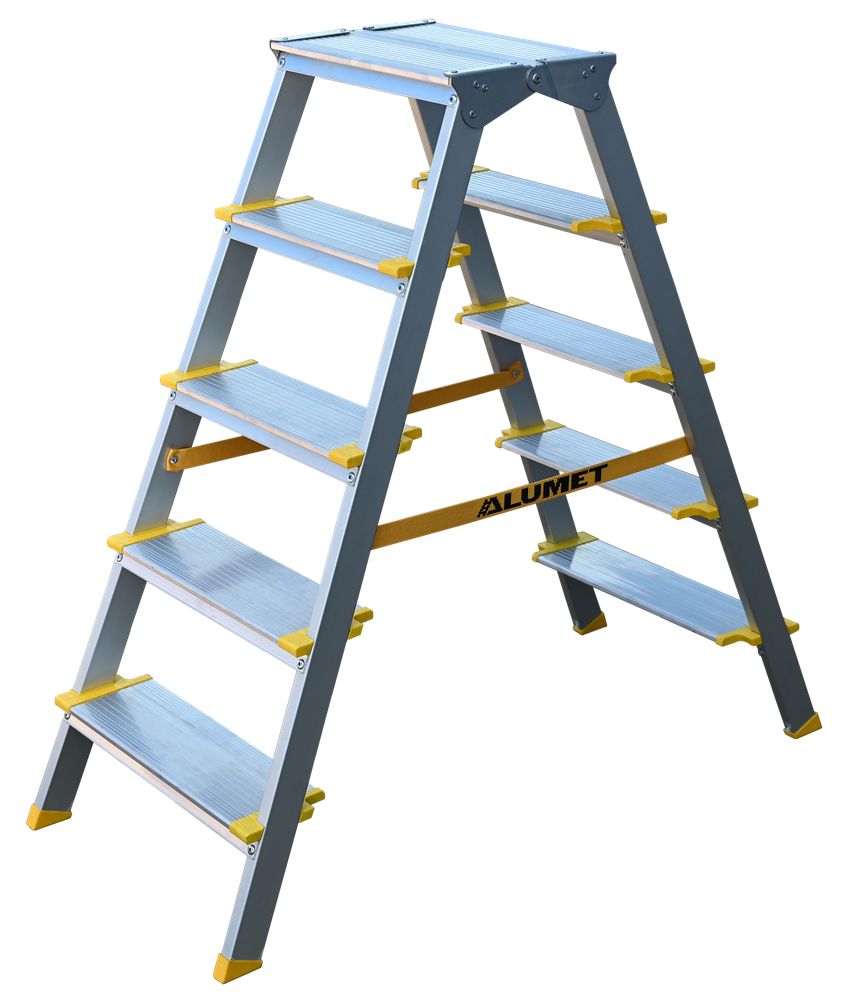 Двухсторонняя анодированная стремянка Алюмет ASD 5205 5 широких ступеней
