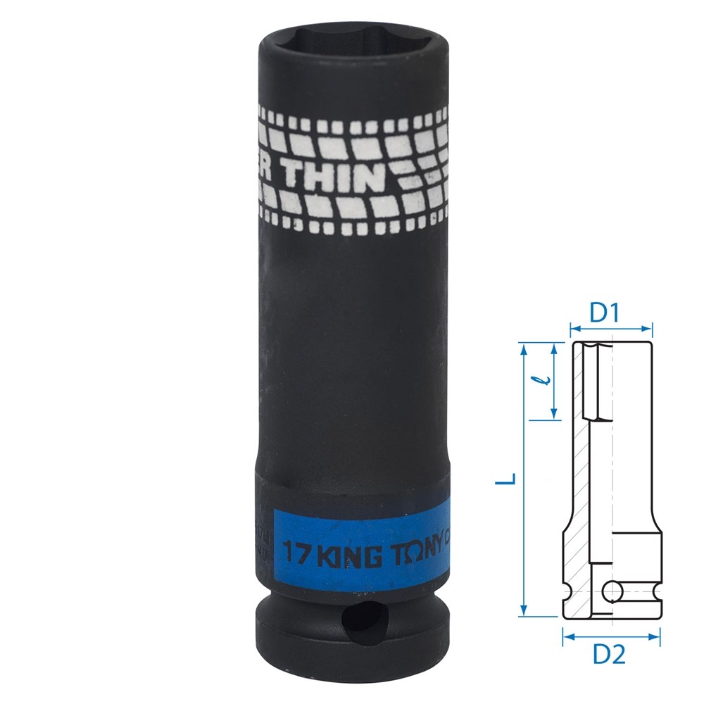 Головка торцевая ударная глубокая 1/2", 17 мм, тонкостенная KING TONY 441517M TONY