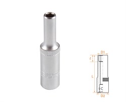Размер 4,5 мм Посадочный квадрат 1/4" Рабочий профиль 6-гранный Рабочий диаметр (D1) 7,5 мм Диаметр в основании (D2) 12 мм Рабочая глубина (l) 11 мм Общая длина (L) 50 мм Материалы инструментальная сталь Cr-V, хром Размеры 50×12×12 мм Вес 0,020 кг