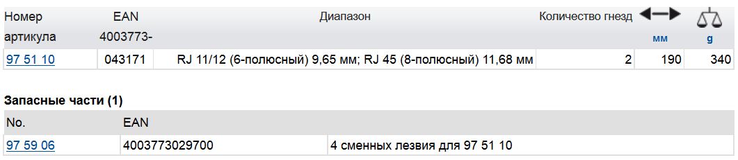 - Для опрессовки 6- и 8-полюсных штекеров Western типа RJ 11/12 (ширина 9,65 мм) и типа RJ 45 (ширина 11,68 мм)
