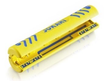 Инструмент для снятия изоляции Jokari Secura Coaxi No. 1 JK 30600 - предназначен для быстрой и легкой зачистки большинства типов обычных коаксиальных кабелей, например, кабели для ТВ антенн d 4,8-7,5 мм, RG 58 / RG 59 и круглый кабель 3 x 0,75 mm2 с оболочкой из ПВХ