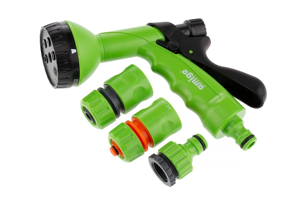 Комплект для полива Amigo 79230 включает всё необходимое для удобного и эффективного полива. В набор входят коннектор сквозной 1/2”, коннектор с аквастопом 1/2” для подключения пистолета без отключения воды, адаптер для крана 1/2” или 3/4” и пистолет-распылитель с 6 режимами работы. Все элементы выполнены из прочного термостойкого ABS-пластика, устойчивого к УФ-излучению, что обеспечивает длительный срок службы. Надёжное герметичное крепление и широкий диапазон рабочих температур делают комплект идеальным для современной системы полива.
