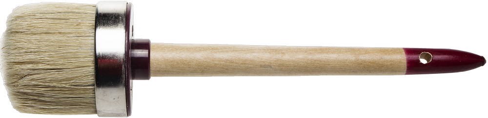 Круглая кисть ЗУБР "Универсал-Мастер" Зубр 01501-65 очень удобна при покраске узких длинных поверхностей и труднодоступных мест, например, углов. Кисть из натуральной щетины отлично впитывает, удерживает и равномерно распределяет ЛКМ по обрабатываемой поверхности благодаря природному расщеплению кончиков щетины и наличию на ней микроскопических чешуек. Предназначена для работ со всеми видами лакокрасочных материалов, в первую очередь с масляными красками и эмалями. Светлая натуральная щетина высокого качества. Деревянная ручка с отверстием для подвески. Металлический бандаж.