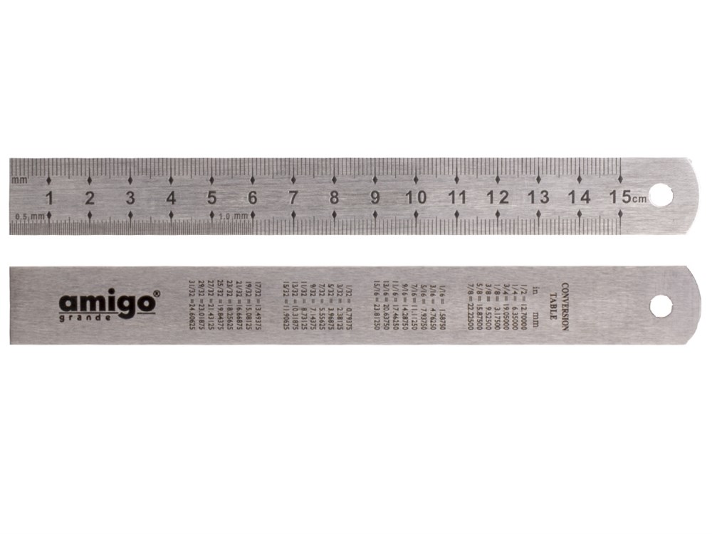 Линейка измерительная Amigo 150 мм 75015 — это надежный инструмент для точных замеров, выполненный из прочной нержавеющей стали. Метрическая разметка расположена на верхней и нижней гранях полотна, обеспечивая максимальное удобство при работе. Гравировка шкалы гарантирует долговечность и исключает стирание разметки, сохраняя точность на протяжении всего срока службы.