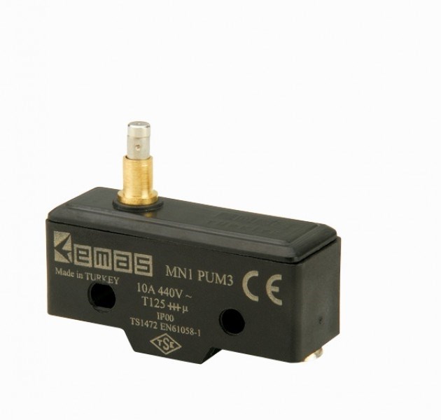 Мини-выключатель EMAS с длинным стальным плунжером MN1PUM3 предназначен для коммутации электрических цепей управления переменного тока частотой 50(60)Гц номинальным напряжением 440В под воздействием управляющих упоров в определённых точках пути контролируемого объекта. Предназначен для работы в стационарных и передвижных установках и служит для коммутации электрических цепей постоянного и переменного тока в радиоэлектронной аппаратуре специального назначения.