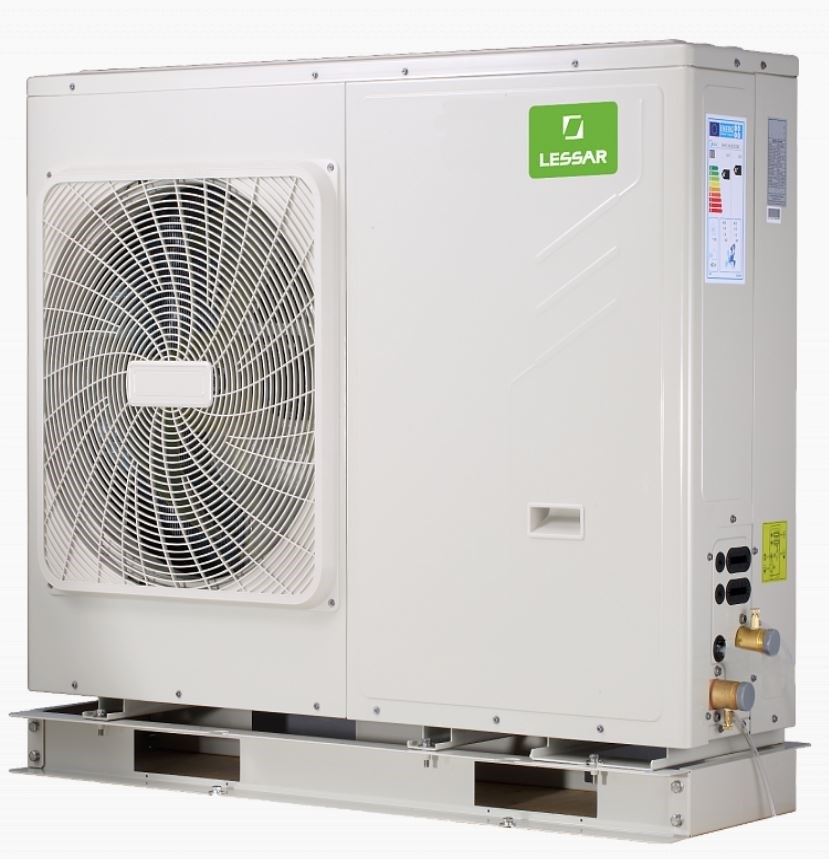 Моноблок (наружный блок) Lessar Heat Pump Mono LUM-HE140NE4-PC-PT представляет собой наружный инверторный блок со встроенным гидромодулем, предназначенный для установки на стене или крыше здания, либо на прилегающей территории. Поскольку гидравлический модуль располагается на улице и включает элементы, работающие на воде (теплообменник и водяной насос), систему следует эксплуатировать при температурах выше 0 °C. При отрицательных температурах внешней среды в качестве хладоносителя рекомендуется использовать пропиленгликоль.
