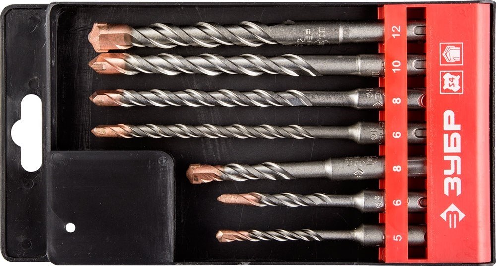 Набор буров по бетону Зубр SDS-Plus 5-12мм 29314-H7 применяется при длительных трудоемких работах по сверлению бетона. Это профессиональный инструмент, рассчитанный на использование на средних и тяжелых перфораторах ударного действия с зажимом SDS plus. Широкий размерный ряд буров позволит решить любую задачу по сверлению бетона, кирпича или камня.