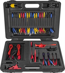 Набор переходников для тестирования электросистемы автомобиля Jonnesway AR020053A применяется для контроля работоспособности элементов низковольтных систем электрооборудования автомобильной и автотракторной техники. Комплект содержит: переменное сопротивление (5КΩ), светодиодный тестер полярности, разъем для установки и проверки SRS (датчика подушки безопасности), зажимы «крокодил», набор игольчатых щупов, разветвитель 1х2, коннекторы с игольчатыми зажимами и набор клемных коннекторов, для круглых и плоских клемм различных производителей. Соединительные кабели. Все коммутации рассчитаны на подключение к стандартным разъемам мультиметра. (Мультиметр в комплект поставки не входит.)