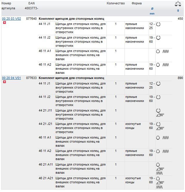 - Набор щипцов предназначен для внешних и внутренних стопорных колец