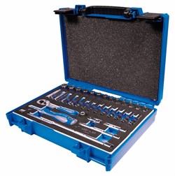 Комплектация Головки и принадлежности 1/4" Короткие 6-гранные 2335M 4, 4.5, 5, 5.5, 6, 7, 8, 9, 10, 11, 12, 13, 14 мм Глубокие 6-гранные 2235M 4, 4.5, 5, 5.5, 6, 7, 8, 9, 10, 11, 12, 13, 14 мм Трещотка флажковая с кнопкой 2771-55G 24 зубца, 134 мм Вороток скользящий Т-типа 2571-45 115 мм Отвертка-вороток 2178DF 150 мм Удлинители 2221 50, 100, 150 мм Кардан 2792 36 мм Держатель вставок (бит) 1/4" 2142 25 мм — — — Ложемент 859253432B 280×187 мм (№7) Пластиковый кейс 820001 289 × 230 × 66 мм Технические характеристики Материалы – инструментальная сталь Cr-V, хром, PP+TPR (рукоять трещотки), EVA (ложемент), пластик ABS (кейс) Размеры кейса – 289 × 230 × 66 мм Вес – 1,76 кг