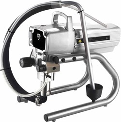 Принцип работы: краска засасывается из ведра и подаётся по шлангу на краскопульт для распыления.