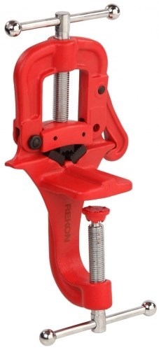 Откидные трубные тиски со струбциной Rekon 2" 031012 предназначены для быстрой фиксации трубы диаметром до 2", обеспечивая максимально сильный захват при нарезании резьбы, отрезки труб и т. д.
