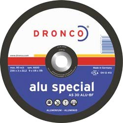 Отрезной круг по металлу Dronco AS 30 ALU special 230 мм - особая структура материала круга препятствует засаливанию и, таким образом, сильно повышает режущие характеристики, такие, как, например, долговечность. Специально для обработки алюминия и цветных металлов.Характеристики