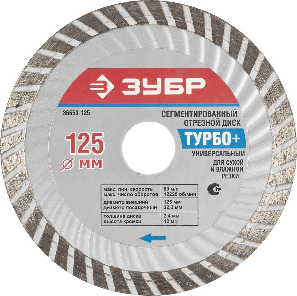 Отрезной диск ЗУБР "Турбо+" алмазный, сегментный, 22,2х125мм 36653-125