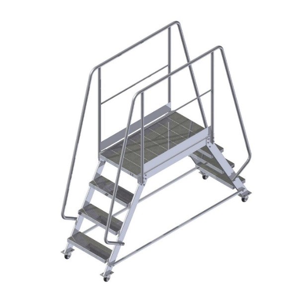 Переходный мостик на колесах ALUR МП-0,54х1,0х1,75К обеспечивает безопасный переход над конвейерными лентами, используется для обслуживания разнообразного оснащения на складах, в магазинах, на производстве.
