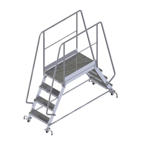 Переходный мостик на колесах с упорами ALUR МП-0,54х1,5х1,0КУ обеспечивает безопасный переход над конвейерными лентами, используется для обслуживания разнообразного оснащения на складах, в магазинах, на производстве.