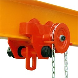 Приводная каретка передвижения Euro-Lift HGT г/п 5т, 12м предназначена для передвижения тали ручной шестеренной по монорельсу, что дает возможность не только поднимать, но и перемещать груз в горизонтальной плоскости. Каретка имеет цепной привод.