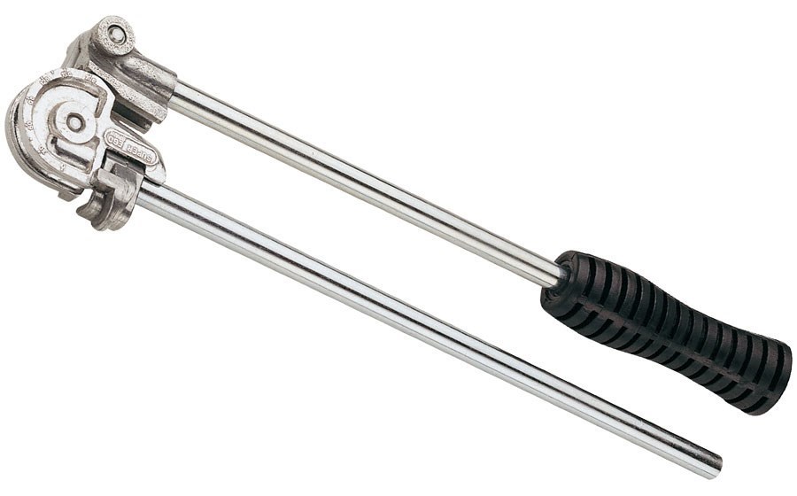 Стандартный трубогиб Super-Ego 15мм 760150000 - удобный ручной трубогиб для гибки труб из мягкой меди, алюминия и тонкостенной стали под углом 0-180 градусов, 15 мм. Шкала с градусом угла сгибания 0 – 180 градусов на гибочной форме: точная гибка по заданному размеру.