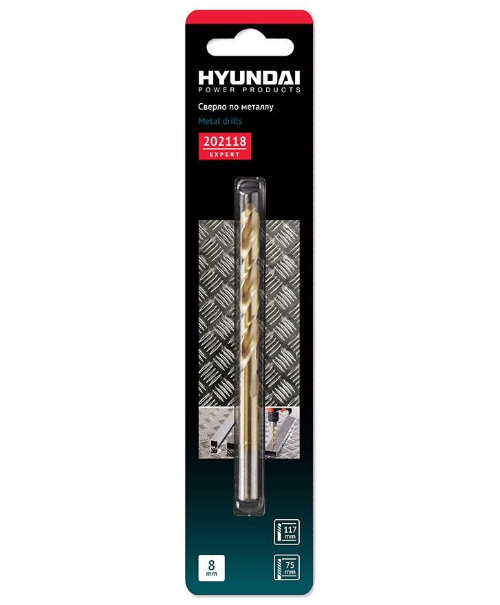 Особенности сверла по металлу 8,0x117/75мм Hyundai 202118:- Для сверления металла (листового и цветного) и стали