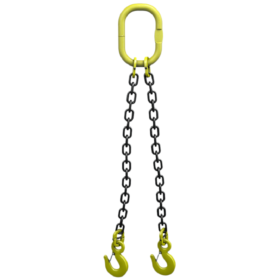 Цепной строп TOR 2СЦ г/п 7,5 т 1,5 м 1008037 состоит из двух ветвей, соединенных овальным звеном, с грузозахватными крюками на концах.