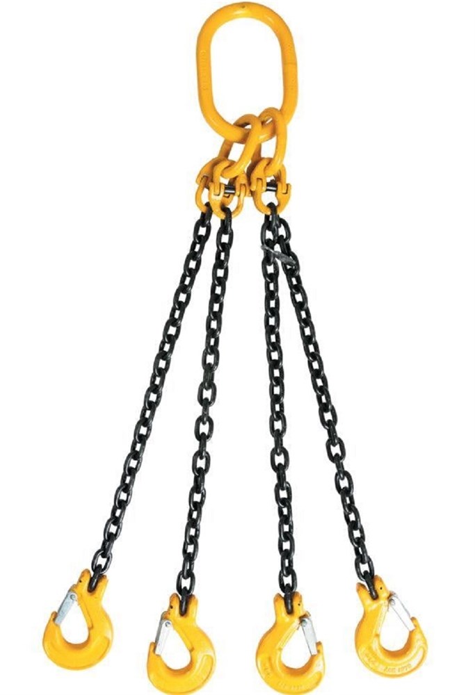 Цепной строп TOR 4СЦ г/п 26,5 т 8,5 м 1008105 состоит из 4-х цепных ветвей с крюками, связанных овальным звеном. Строп 4СЦ производится в соответствии с ТУ 3178-005-41037529-2016 (ТР ТС 010-2011).