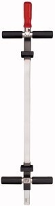 Бесступенчатая, произвольная установка и самостоятельная фиксация верхней части за счёт кнопки - фиксатора. За счёт установки по центру детали достигается правильное распределение веса особенно на длинных струбцинах.