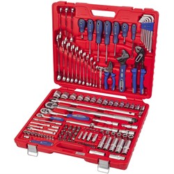 Набор инструментов универсальный, 133 предмета МАСТАК 0-133C - наиболее полный по составу и функциональным возможностям набор инструментов фирмы МАСТАК. Ключи и головки различной конфигурации и типов, насадки различного профиля, всевозможные принадлежности для удобной работы с различными узлами автомобиля и прочими механизмами; отвёртки, шарнирно-губцевые инструменты – всё, что удовлетворит потребности самого взыскательного мастера! Особенности Особенностью набора является входящий в состав набора динамометрический ключ, что делает набор практически незаменимым в любой мастерской или станции ТО! Качество Инструменты марки МАСТАК изготовлены из инструментальной легированной хром-ванадиевой стали специального сплава. Технология изготовления ключей и головок включает в себя метод горячей ковки с последующей термообработкой, придающим инструментам особую прочность и высокую надёжность, что даёт возможность профессионального использования набора в условиях автосервисной мастерской, станции техническог