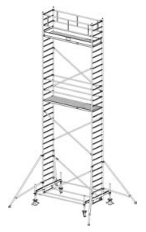 Алюминиевая вышка-тура Krause Stabilo 100 9,4м 751966 прошла проверку TUV, предельная нагрузка 200 кг/м2 (группа помостов 3) в соответствии с DIN EN 1004. Алюминиевое изделие универсального типа для рабочих высот до 14,00 м. В собранном состоянии вышка легко перемещается на базовой траверсе. Регулируемые по высоте ролики обеспечивают безопасность на неровных поверхностях. Платформы легко навешиваются между перекладинами (шаг - 25 см). Исключаются трудоемкие операции переналадки и демонтажа. При рабочей высоте изделия 7,40 м и более в комплект поставки включаются угловые опоры. Длина помоста: 3,00 м. Ширина помоста: 0,75 м.