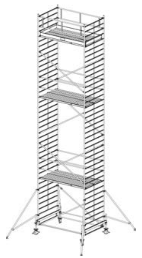 Алюминиевая вышка-тура Krause Stabilo 500 11,4м 735126 прошла проверку TUV, предельная нагрузка 200 кг/м2 (группа помостов 3) в соответствии с DIN EN 1004. Идеально подходит для рабочих высот до 14,00 м. Платформы легко навешиваются между перекладинами (шаг - 25 см). Исключаются трудоемкие операции переналадки и демонтажа. Площадка размером около 4,00 м2 безопасна и достаточно просторна для людей и материалов. Удобные вертикальные рамы легко монтируются одним человеком, профилированные перекладины обеспечивают безопасность подъема и спуска. При рабочей высоте изделия 8,40 м и более в комплект поставки включаются угловые опоры. Длина помоста: 2,00 м. Ширина помоста: 1,50 м.