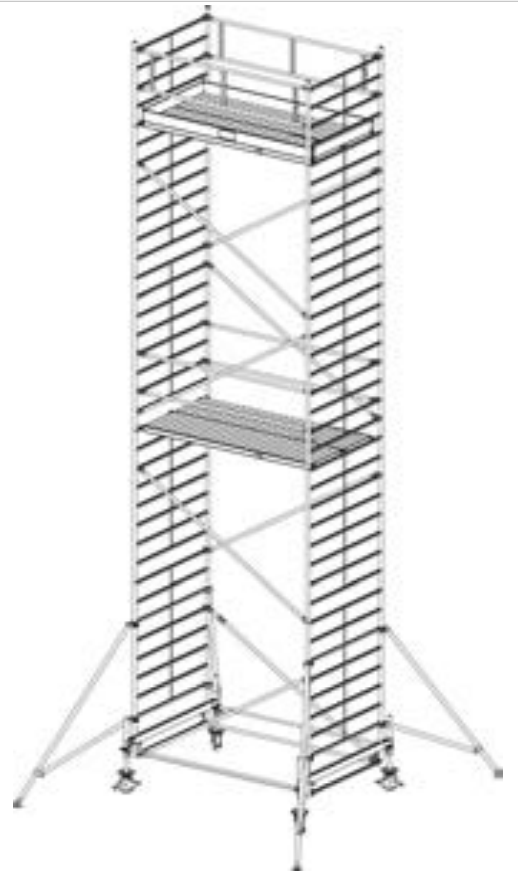 Алюминиевая вышка-тура Krause Stabilo 500 10,4м 745118 прошла проверку TUV, предельная нагрузка 200 кг/м2 (группа помостов 3) в соответствии с DIN EN 1004. Идеально подходит для рабочих высот до 14,00 м. Платформы легко навешиваются между перекладинами (шаг - 25 см). Исключаются трудоемкие операции переналадки и демонтажа. Площадка размером около 4,00 м2 безопасна и достаточно просторна для людей и материалов. Удобные вертикальные рамы легко монтируются одним человеком, профилированные перекладины обеспечивают безопасность подъема и спуска. При рабочей высоте изделия 8,40 м и более в комплект поставки включаются угловые опоры. Длина помоста: 2,50 м. Ширина помоста: 1,50 м.