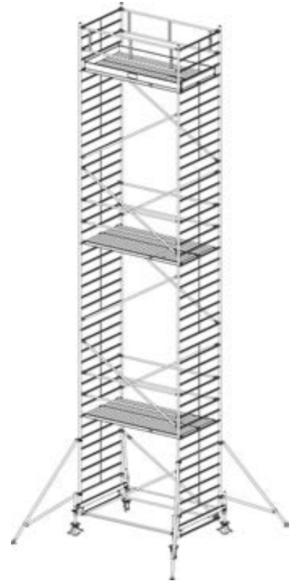 Алюминиевая вышка-тура Krause Stabilo 500 12,4м 745132 прошла проверку TUV, предельная нагрузка 200 кг/м2 (группа помостов 3) в соответствии с DIN EN 1004. Идеально подходит для рабочих высот до 14,00 м. Платформы легко навешиваются между перекладинами (шаг - 25 см). Исключаются трудоемкие операции переналадки и демонтажа. Площадка размером около 4,00 м2 безопасна и достаточно просторна для людей и материалов. Удобные вертикальные рамы легко монтируются одним человеком, профилированные перекладины обеспечивают безопасность подъема и спуска. При рабочей высоте изделия 8,40 м и более в комплект поставки включаются угловые опоры. Длина помоста: 2,50 м. Ширина помоста: 1,50 м.