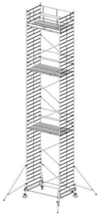 Алюминиевая вышка-тура Krause Stabilo 500 13,4м 745149 прошла проверку TUV, предельная нагрузка 200 кг/м2 (группа помостов 3) в соответствии с DIN EN 1004. Идеально подходит для рабочих высот до 14,00 м. Платформы легко навешиваются между перекладинами (шаг - 25 см). Исключаются трудоемкие операции переналадки и демонтажа. Площадка размером около 4,00 м2 безопасна и достаточно просторна для людей и материалов. Удобные вертикальные рамы легко монтируются одним человеком, профилированные перекладины обеспечивают безопасность подъема и спуска. При рабочей высоте изделия 8,40 м и более в комплект поставки включаются угловые опоры. Длина помоста: 2,50 м. Ширина помоста: 1,50 м.
