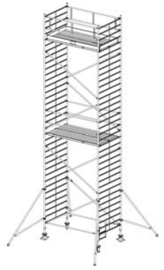 Алюминиевая вышка-тура Krause Stabilo 5000 10,3м 749109 прошла проверку TUV, предельная нагрузка 200 кг/м2 (группа помостов 3) в соответствии с DIN EN 1004. Идеально подходит для рабочих высот до 14,00 м. Платформы легко навешиваются между перекладинами (шаг - 25 см). Исключаются трудоемкие операции переналадки и демонтажа. Площадка размером около 4,00 м2 безопасна и достаточно просторна для людей и материалов. Удобные вертикальные рамы легко монтируются одним человеком, профилированные перекладины обеспечивают безопасность подъема и спуска. Угловые опоры входят в комплект поставки. Длина помоста: 2,50 м. Ширина помоста: 1,50 м.
