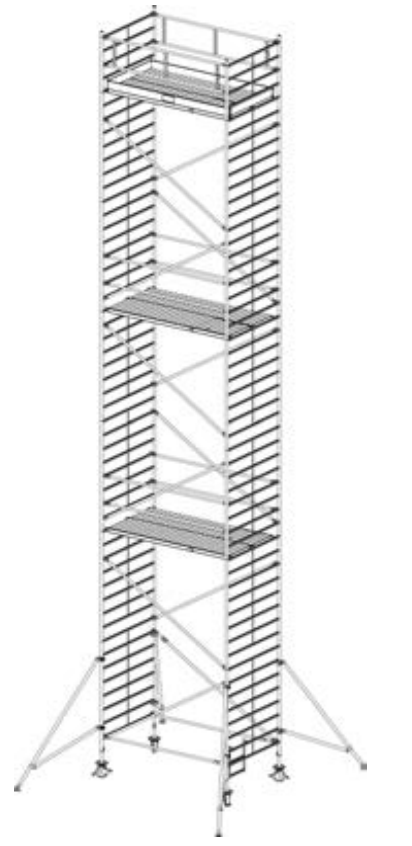 Алюминиевая вышка-тура Krause Stabilo 5000 14,3м 759146 прошла проверку TUV, предельная нагрузка 200 кг/м2 (группа помостов 3) в соответствии с DIN EN 1004. Идеально подходит для рабочих высот до 14,00 м. Платформы легко навешиваются между перекладинами (шаг - 25 см). Исключаются трудоемкие операции переналадки и демонтажа. Площадка размером около 4,00 м2 безопасна и достаточно просторна для людей и материалов. Удобные вертикальные рамы легко монтируются одним человеком, профилированные перекладины обеспечивают безопасность подъема и спуска. Угловые опоры входят в комплект поставки. Длина помоста: 3,00 м. Ширина помоста: 1,50 м.