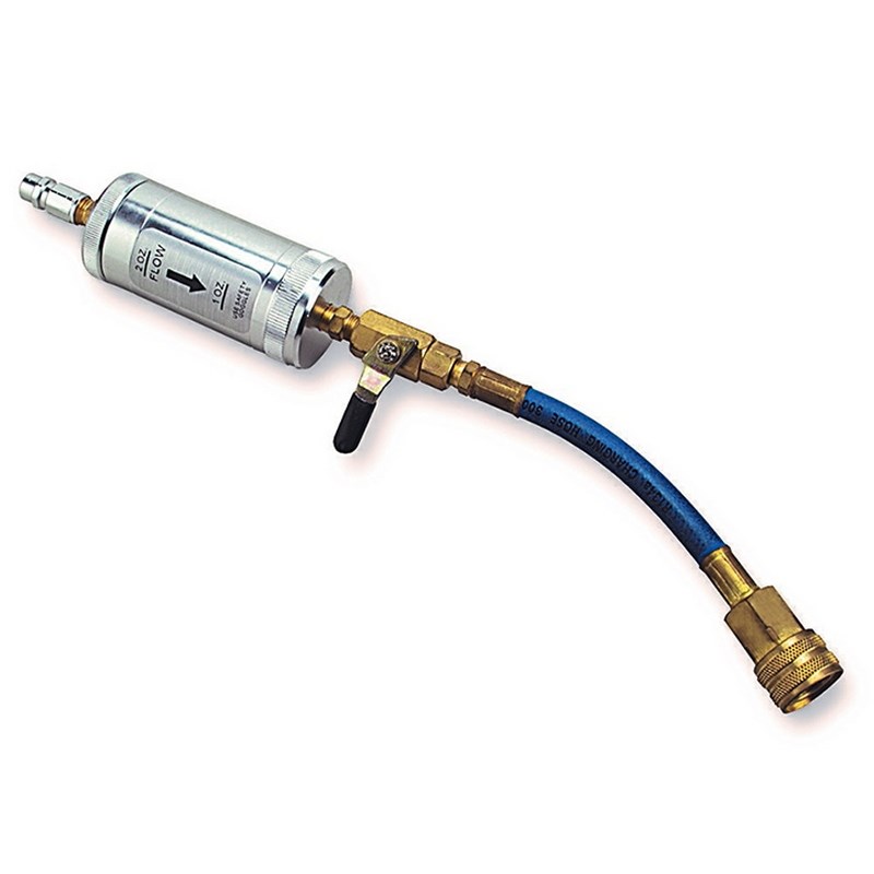 Назначение Предназначен для подачи масла в систему кондиционирования. Описание Цилиндр подсоединяется в магистраль между баллоном с фреоном и манометрическим коллектором. Необходимое количество масла заправляется вместе с потоком хладагента.